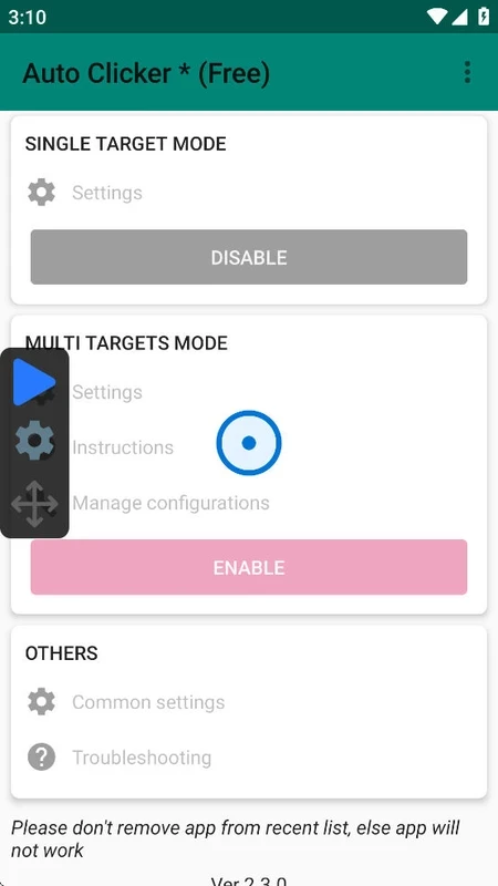 The app offers a simple and user-friendly interface, and streamlines users to the multiple features more reliably. Nearly all configuration options are available on the main screen, and you can reliably generate clicking tasks while using the straightforward controls. Simply command the app about where and how it should tap, and use an exclusive control button for starting and stopping the script.